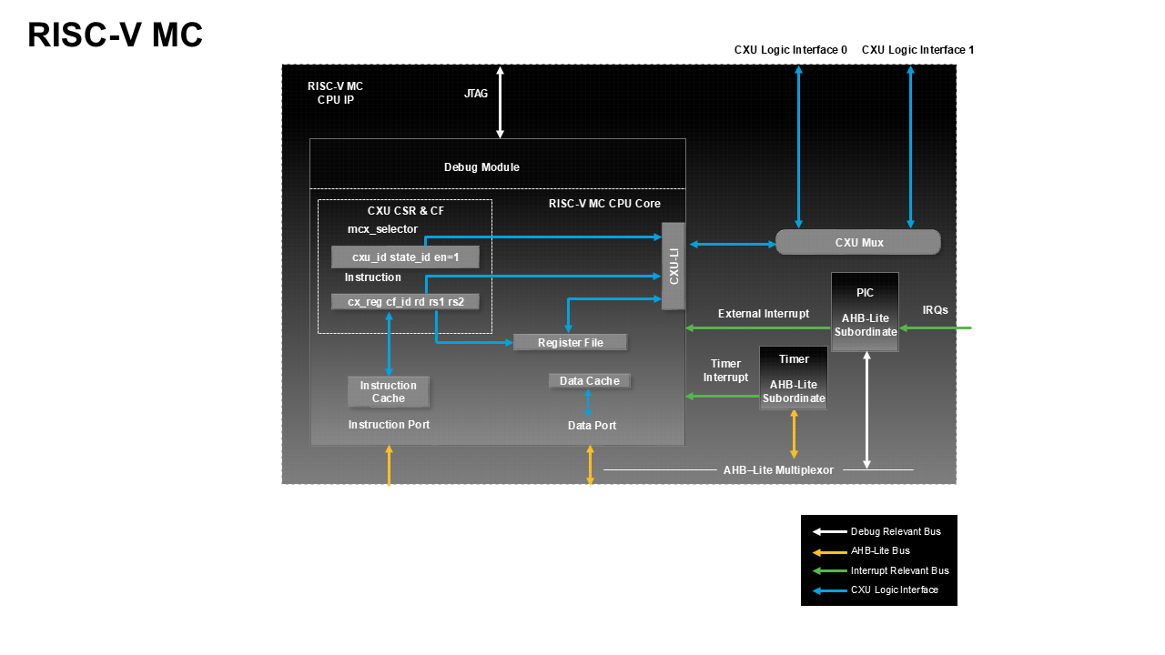The Lattice Semiconductor RISC-V Nano CPU IP contains a 32-bit RISC-V processor core and a lightweight interrupt